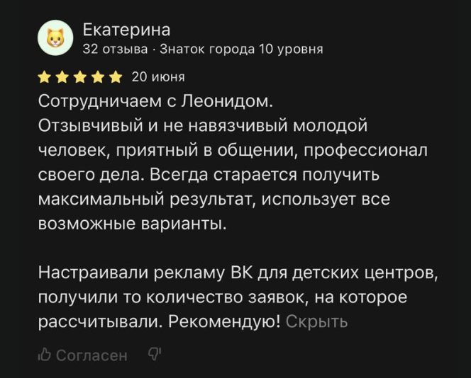 За вами закрепляется специалист, который будет вас консультировать, отправлять еженедельные отчеты и предлагать решения по улучшению маркетинга вашего центра